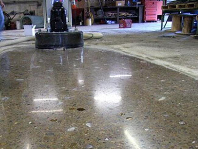 混凝土密封固化劑材料滲透到混凝土內(nèi)部后,和混凝土內(nèi)部的游離鈣離子等進(jìn)行反應(yīng),形成結(jié)構(gòu)穩(wěn)定的分子,使地面強(qiáng)度提升,并通過(guò)拋光打磨后,提升地面的光澤度。