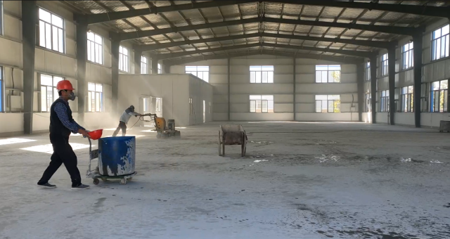 將地面清掃干凈至地面干燥后,視地面情況調(diào)配固化劑比例1:1-4(每平方用量:0.3-0.4kg)將固化劑用噴霧器均勻噴灑在混凝土地面,待固化劑與混凝土反應(yīng)24小時后,再用噴霧器均勻噴灑加強(qiáng)劑(每平方用量:0.3-0.4kg)