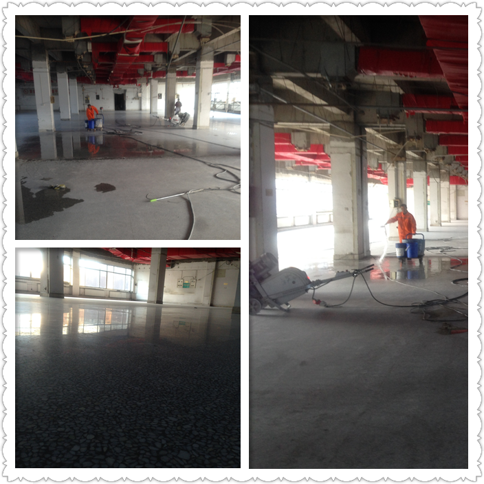 2、第二用清水清洗地面,沖洗地面表層浮塵和砂眼里的細塵。